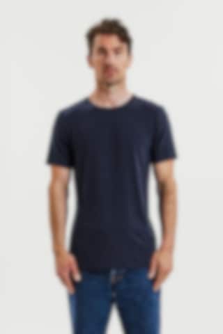 Crafted from luxurious Lenzing TENCEL™ Lyocell fabric, this T-shirt features a remarkable luster and a silky-smooth touch. It offers a slightly slimmer silhouette with just the right amount of stretch for a fitted feel, ideal for layering under a shirt or wearing alone for a sleek, lightweight fit. The neckline features a hidden seam, enhancing comfort, while care instructions are printed directly on the fabric to eliminate chafing from labels