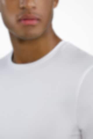 Crafted from luxurious Lenzing TENCEL™ Lyocell fabric, this T-shirt features a remarkable luster and a silky-smooth touch. It offers a slightly slimmer silhouette with just the right amount of stretch for a fitted feel, ideal for layering under a shirt or wearing alone for a sleek, lightweight fit. The neckline features a hidden seam, enhancing comfort, while care instructions are printed directly on the fabric to eliminate chafing from labels