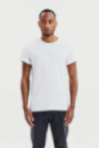 T-shirt with rolled-up sleeves, each securely fastened by a discreet seam to ensure they stay in place. This tailored fit design is based on our classic 'Crew-Neck regular'.