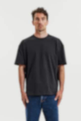 Crafted from sturdy 300 gsm organic cotton fabric, this T-shirt offers a substantial feel and exceptional comfort. It features a robust neckline with top stitch detailing and stylish side slits. With slightly extended sleeves and broader shoulders, it gives a subtle oversized look. This piece truly shines when worn solo, delivering an effortlessly cool aesthetic.