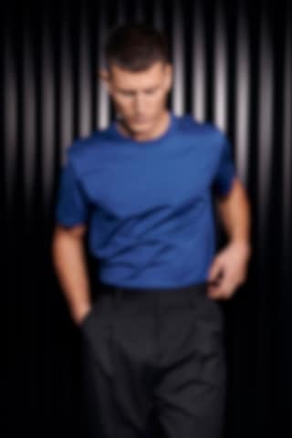 Crafted from the finest Pima Cotton, this T-shirt in Ink Blue is the perfect choice for dressing up. The heavyweight fabric provides a unique luster and drapes elegantly against the skin. The robust neckline is ideal for wearing under a suit jacket, making it a great alternative to a traditional shirt. Whether paired with tailored trousers or denim, this T-shirt exudes sophistication and style.