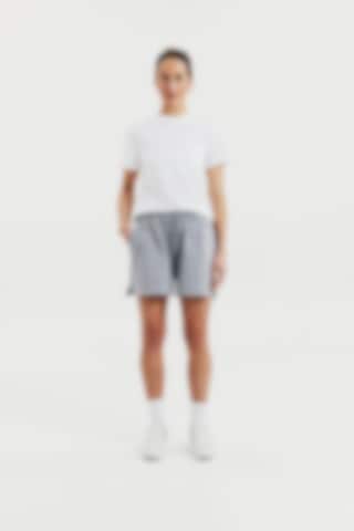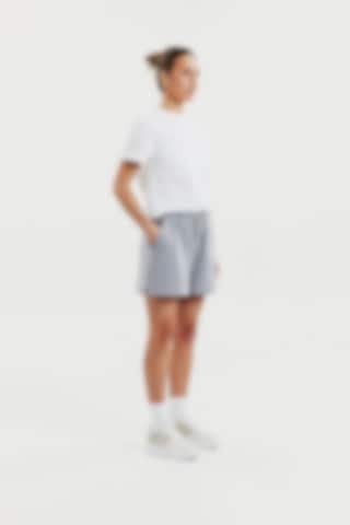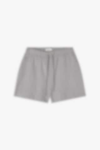 Shorts in organic cotton French terry. Minimalist, slightly shorter model. Waist with hidden elastic and drawstring that runs through metal eyelets. Slanted pockets at the front. True summer favorites.