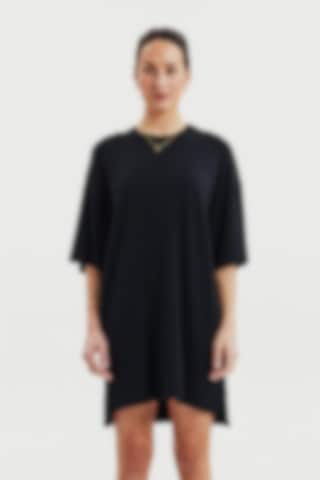 Indulge in the luxurious feel of our heavy viscose jersey fabric, known for its exquisite drape. The boxy fit of this T-shirt dress offers exceptional comfort, allowing you to move with ease. With its combination of premium fabric and contemporary cut, this dress exudes an effortless and elegant look.