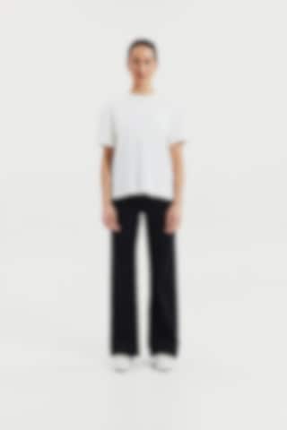 Experience the luxurious feel of our heavy viscose jersey fabric with its exquisite drape. The boxy fit and side slits provide exceptional comfort. The combination of this premium fabric and contemporary cut gives our T-shirt an updated and elegant look that is truly remarkable.