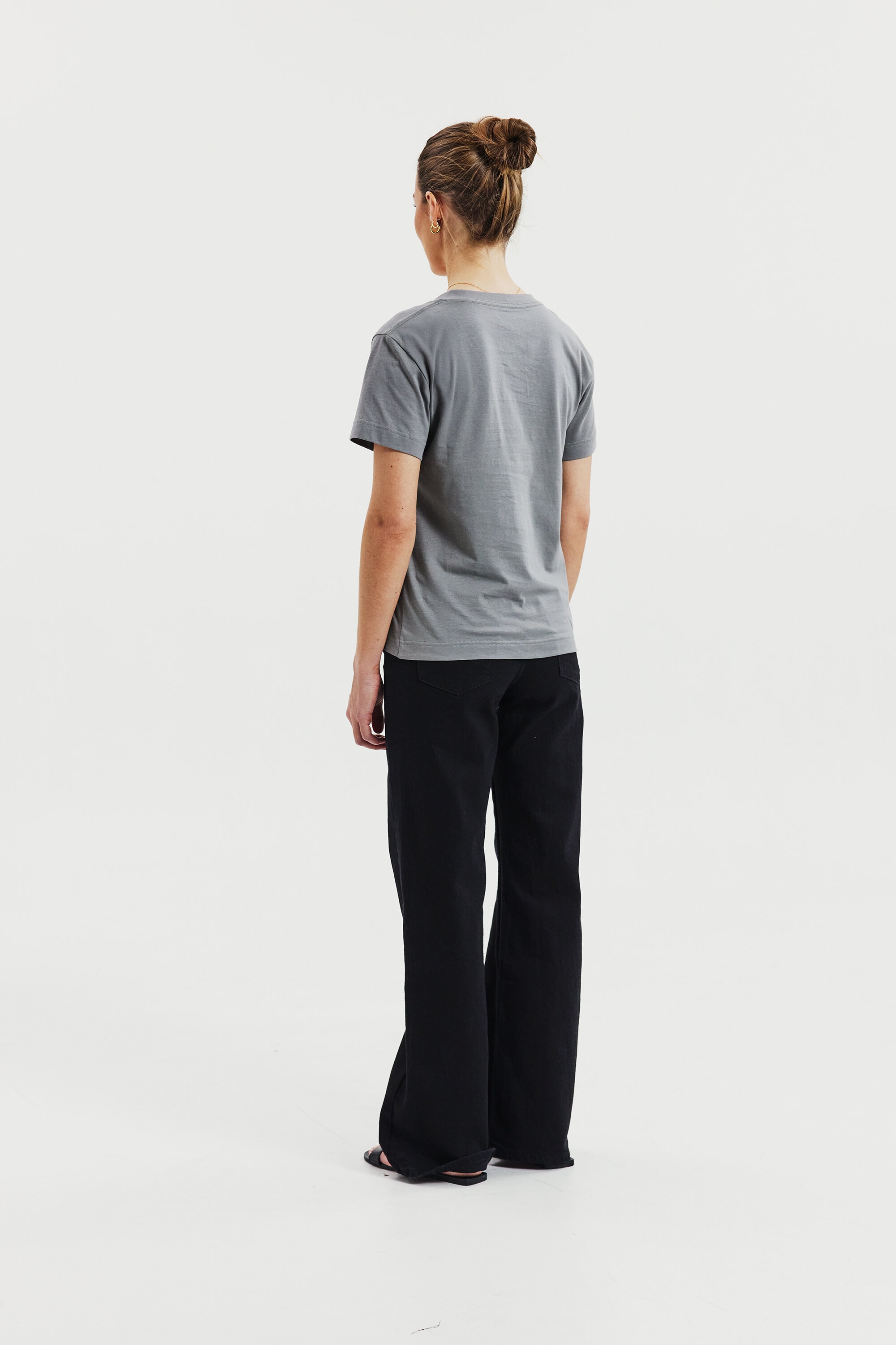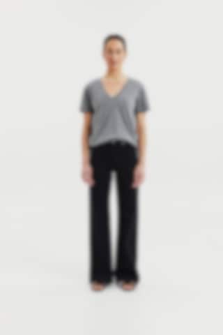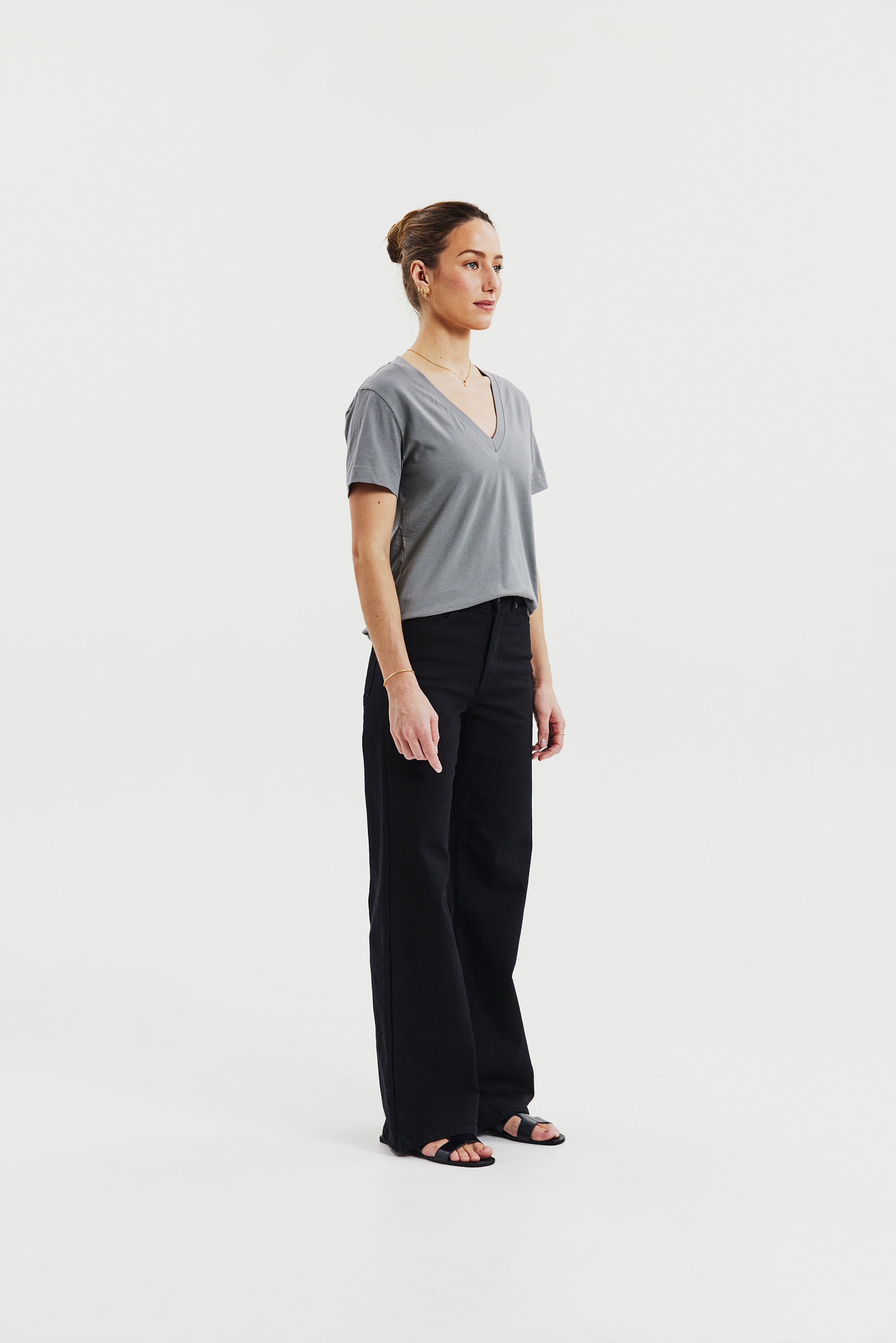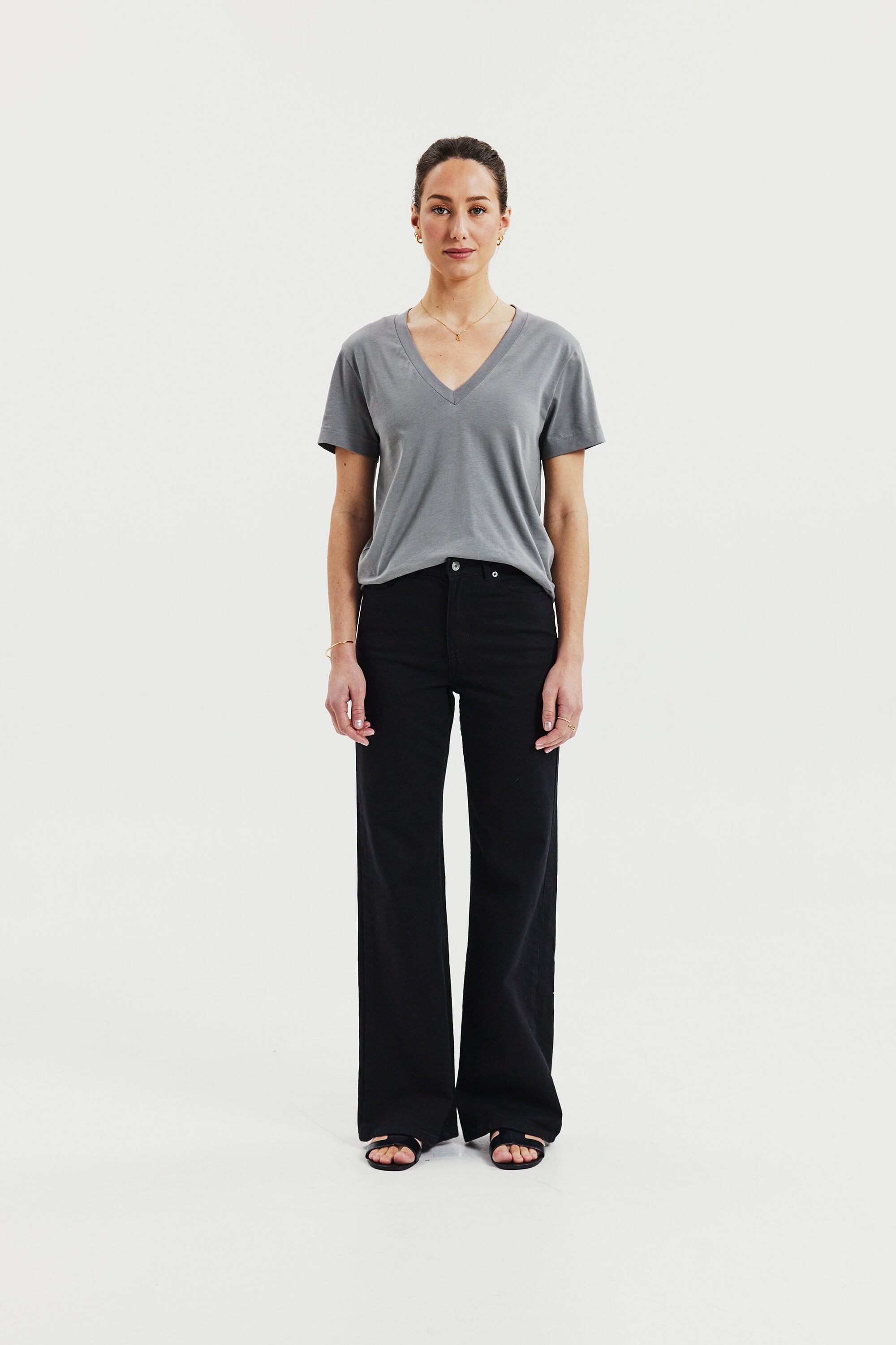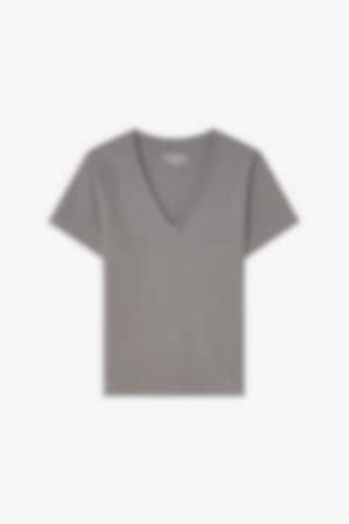 A modern classic, this T-shirt features a boxy cut crafted from dense, soft organic cotton jersey. Designed for a regular fit, it has a generous V-neck and is finished with precise topstitching along the edges—an essential staple for any wardrobe.