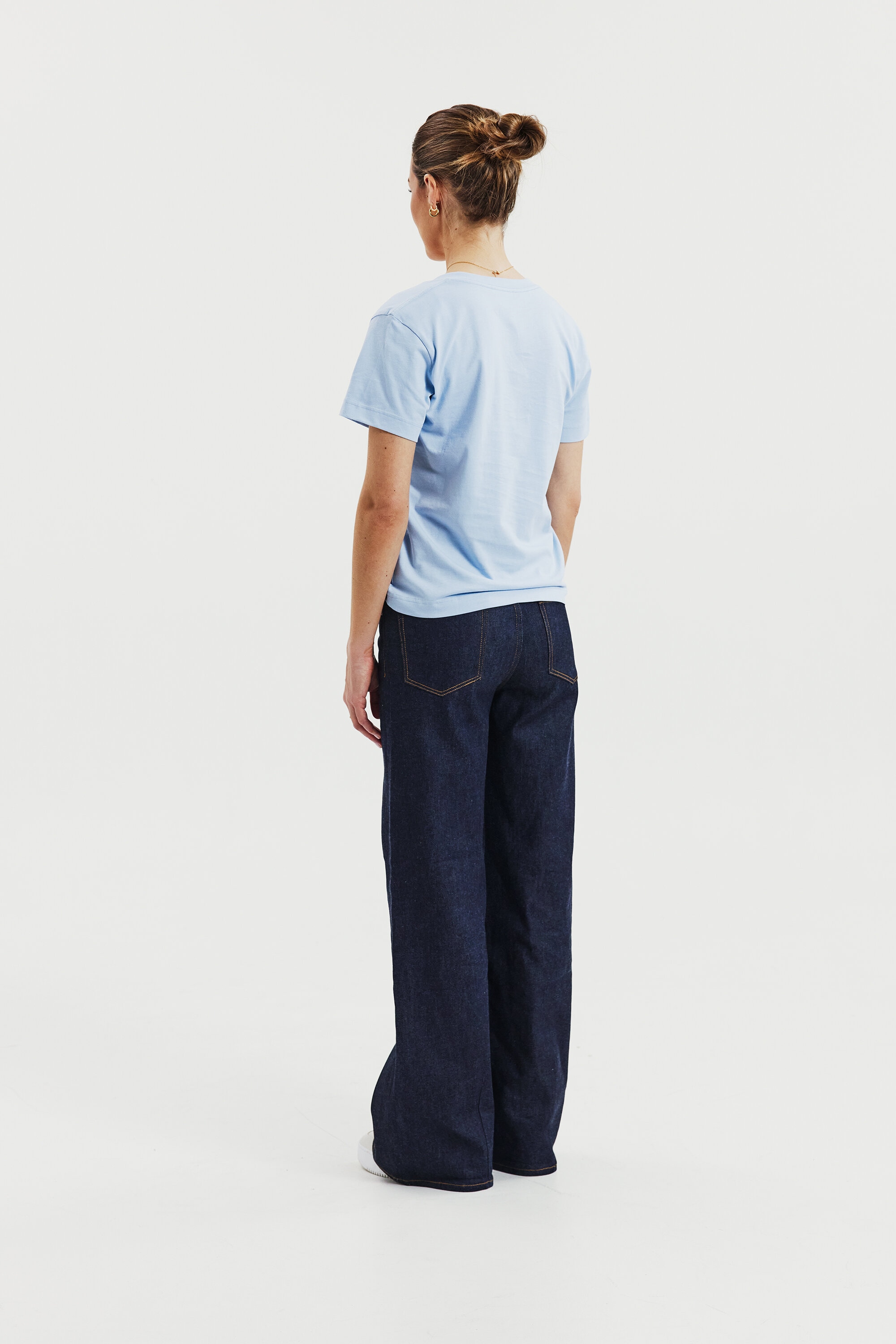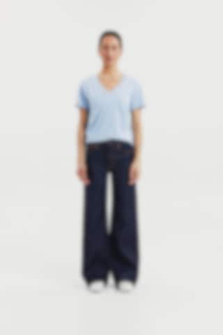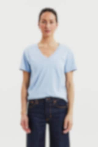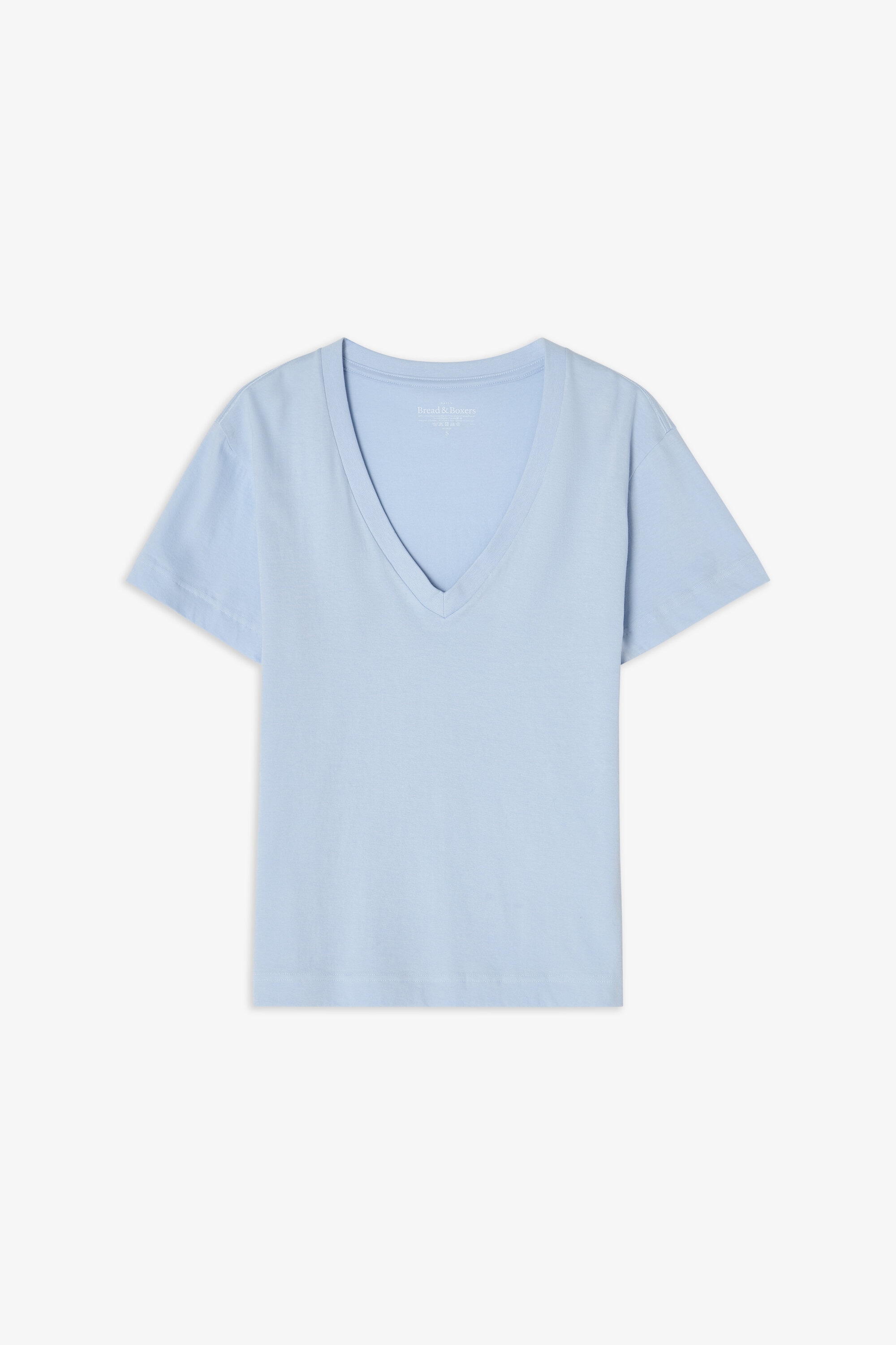 A modern classic, this T-shirt features a boxy cut crafted from dense, soft organic cotton jersey. Designed for a regular fit, it has a generous V-neck and is finished with precise topstitching along the edges—an essential staple for any wardrobe.