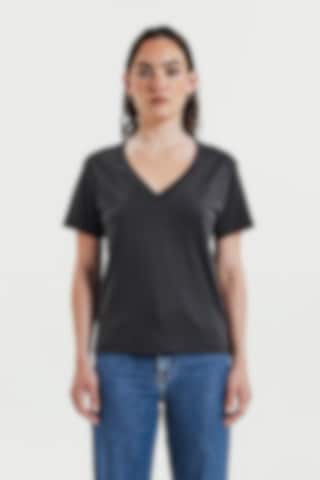A modern classic, this T-shirt features a boxy cut crafted from dense, soft organic cotton jersey. Designed for a regular fit, it has a generous V-neck and is finished with precise topstitching along the edges—an essential staple for any wardrobe.