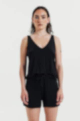 Designed with a flattering V-neckline at both the front and back, this tank also features decorative flatlock stitching at the neckline and hem for a refined finish. Pair it with matching pajama shorts or pants for a complete and comfortable sleepwear set.