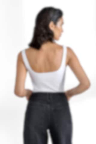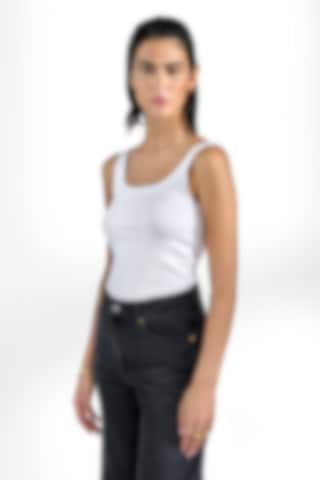 Elegant tank top made from an organic double layered cotton jersey for a luxury feel. Its hidden seams and perfected bands makes it just as suitable for the party as an everyday staple. The unique design is fully covering, has a scooped back and provide a slight shaping feel. We love to style it with almost all items in our wardrobe but especially with a festive skirt or with jeans and a blazer.